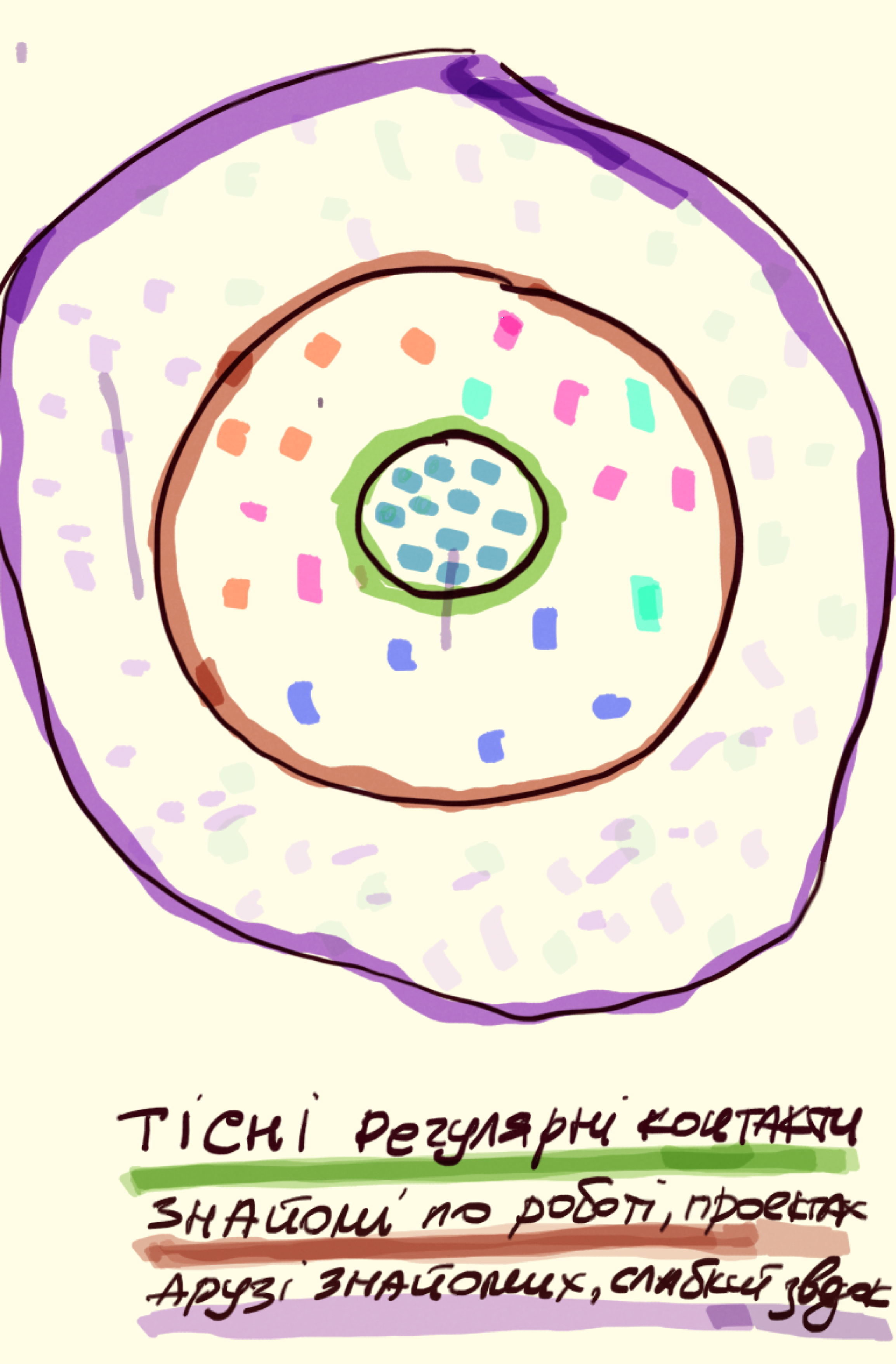 І почав я з одніє вправи – намалювава різні кола і вписав туди людей відповідно до таких критеріїв: