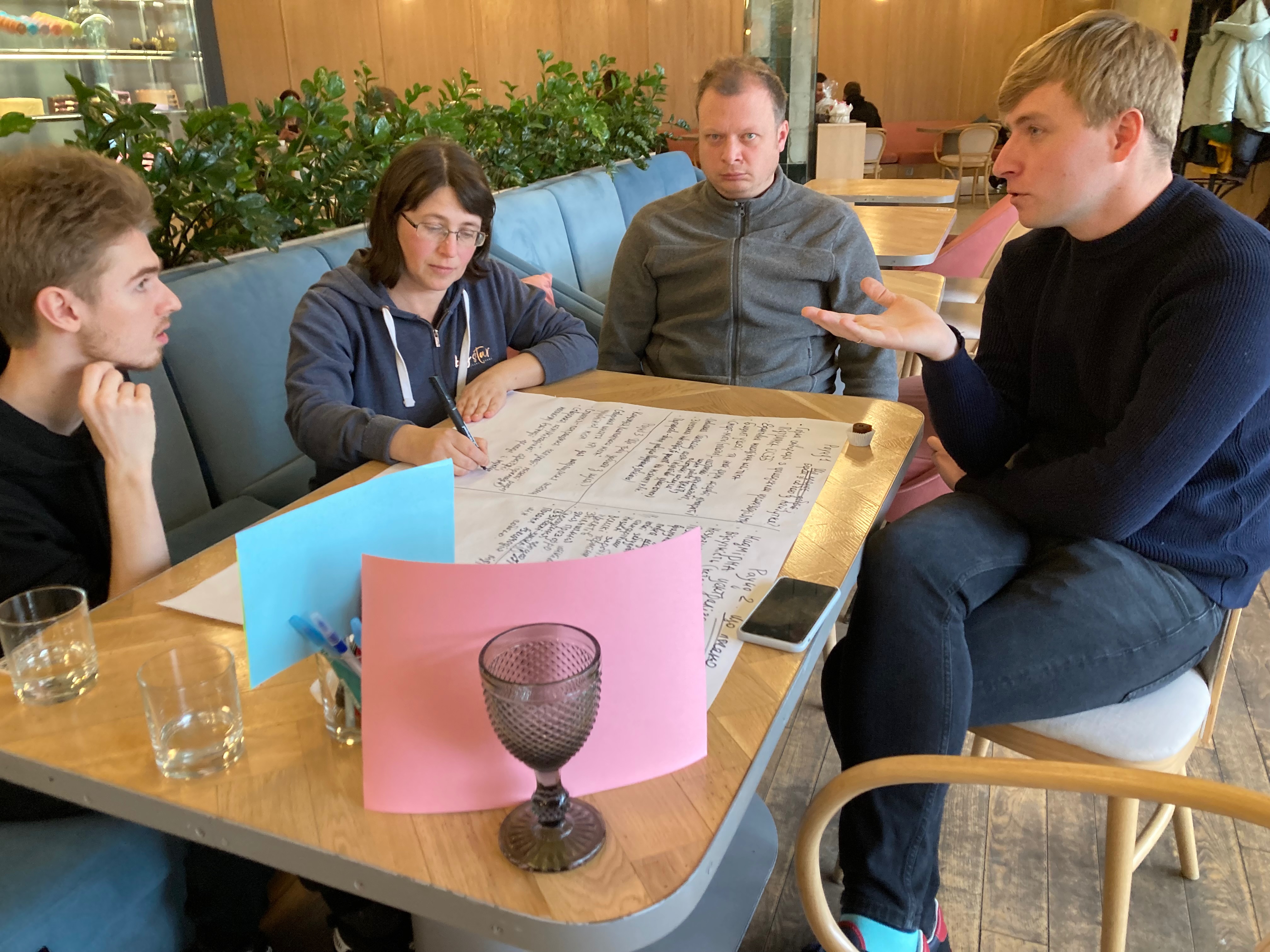 ◼︎ Завершується робота кафе підбиттям підсумків і узагальненням в ході бесіди з усією групою. Результатом є «перехресне запилення» (перенесення) ідей і думок (5- 15 хвилин).