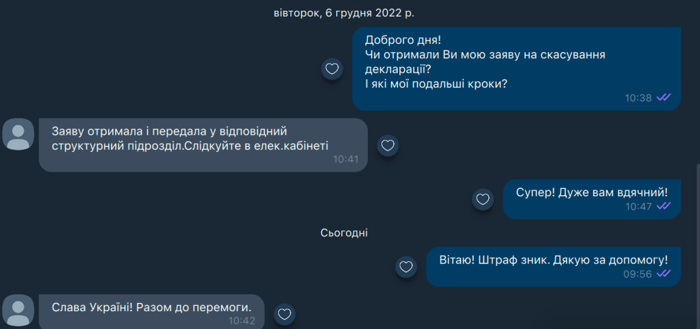 Відповідно до такої ситуації, я мав написати заяву на анулювання моєї декларації і подати в мою податкову. Що я і зробив. Заяву швиденько написав, відправив у вайбер (як не дивно, але я знайшов податкового інспектора у вайбері), швидко отримав зворотній звязок на цю заяву. Відправив Новою поштою і почав чекати. Я моніторив ледь не щодня свій статус – і вуаля. Сьогодні перевірив – борг зник, заяву мою розглянули, і декларацію скасували.