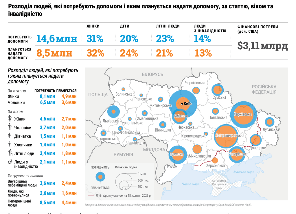За даними ООН, кількість людей, які цього року потребуватимуть допомоги – близько 14 мільйонів українців. А враховуючи наступ на Харківщині, то мабуть ще більше.