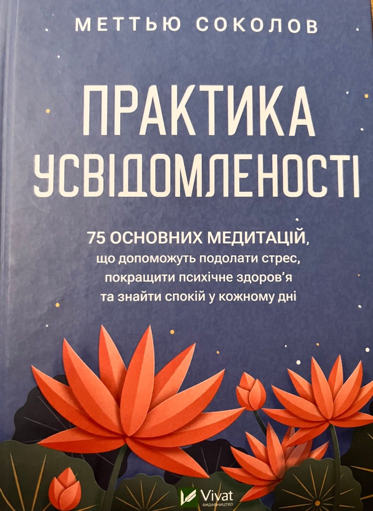В книгарні натрапив на книжку Меттью Соколова “Практика усвідомленості: 75 основних медитацій, що допоможуть подолати стрес, покращити здоров’я та знайти спокій у кожному дні”. А оскільки я, як і вся країна живе на межі балансування кукухи, то я книжку купив і вирішив попрактикувати те, що там викладено.
