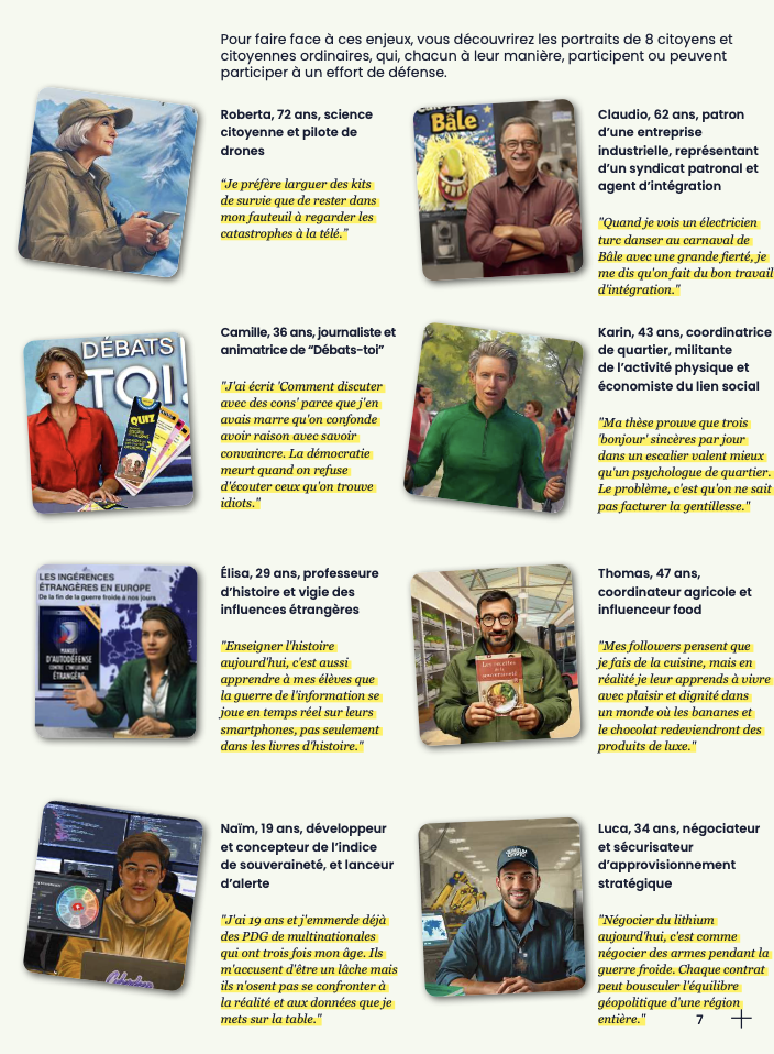 Щоб показати, як суспільство може відповідати на ці виклики, дослідження знайомить нас із вісьмома “акторами оборони майбутнього”. Їхні слова яскраво ілюструють їхню роль: